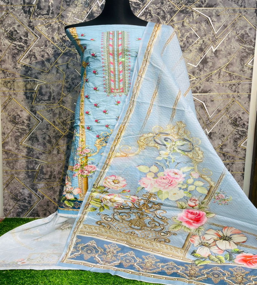 🌟রুচিসম্মত ড্রেস হোক আপনার প্রতিদিনের সঙ্গী! আলহুদা বুটিক্স কটন  থ্রি পিস  জামার বুকে এম্বোডারি +সিকুয়েন্স কাজ করা