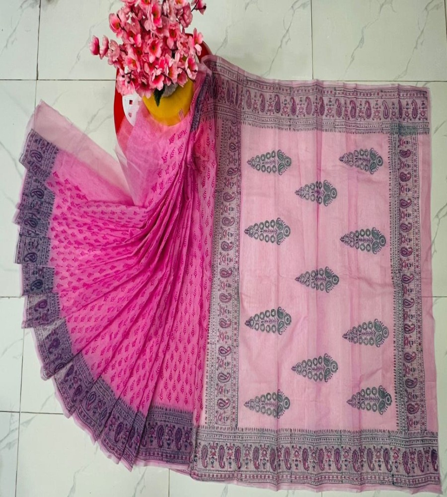 হাফ সিল্ক শাড়িতে ব্লক প্রিন্ট কাজ করা কালেকশন