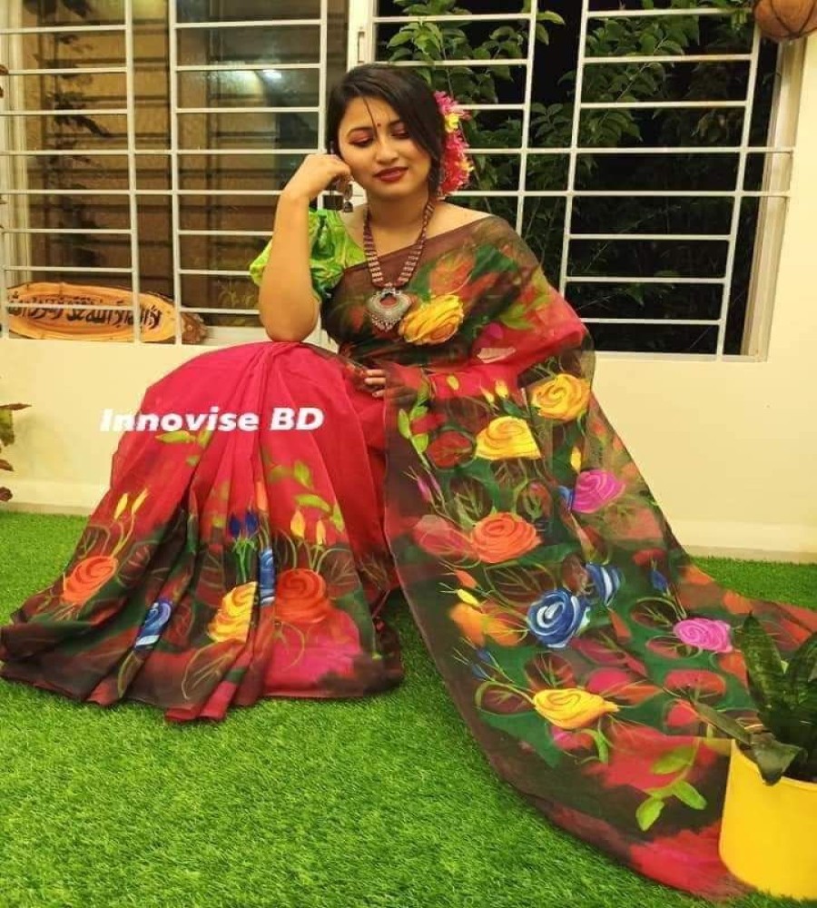 হাফ সিল্ক হ্যান্ড প্রিন্ট শাড়ির কালেকশন