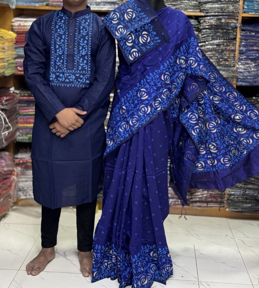 নতুন ধুপিয়ান সিল্ক শাড়ি ও পাঞ্জাবির কাপল সেট