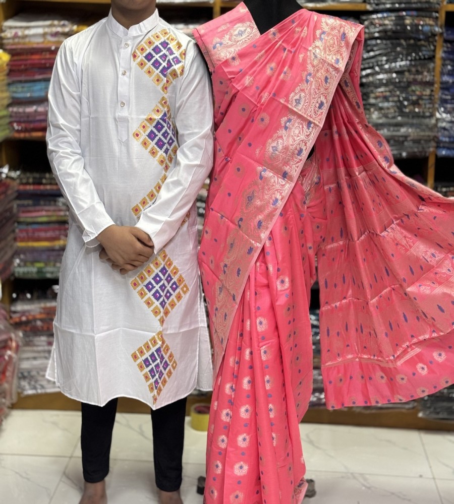 নতুন ধুপিয়ান সিল্ক শাড়ি ও পাঞ্জাবির কাপল সেট