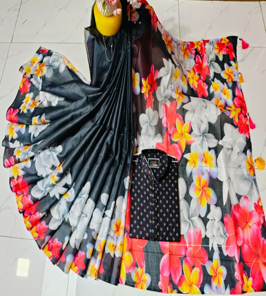 চান্দুরী ডিজিটাল প্রিন্টের শাড়ি এবং পাঞ্জাবি কাপল ড্রেস