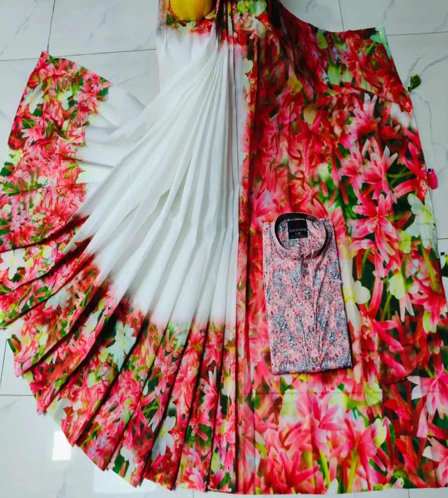 চান্দুরী ডিজিটাল প্রিন্টের শাড়ি এবং পাঞ্জাবি কাপল ড্রেস