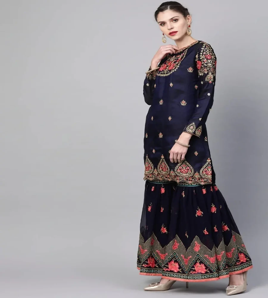 সেমি-স্টিচড জর্জেট এমব্রয়ডারি শারারা ড্রেস