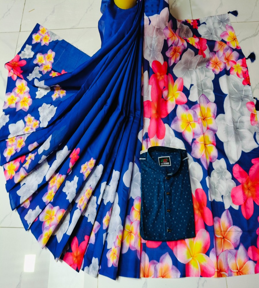 চান্দুরী ডিজিটাল প্রিন্টের শাড়ি এবং পাঞ্জাবি কাপল ড্রেস