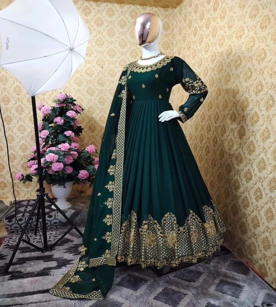 সেমী স্টিচড জর্জেট এমব্রয়ডারি লং ফ্লোর টাচ আনারকলি পার্টি ড্রেস