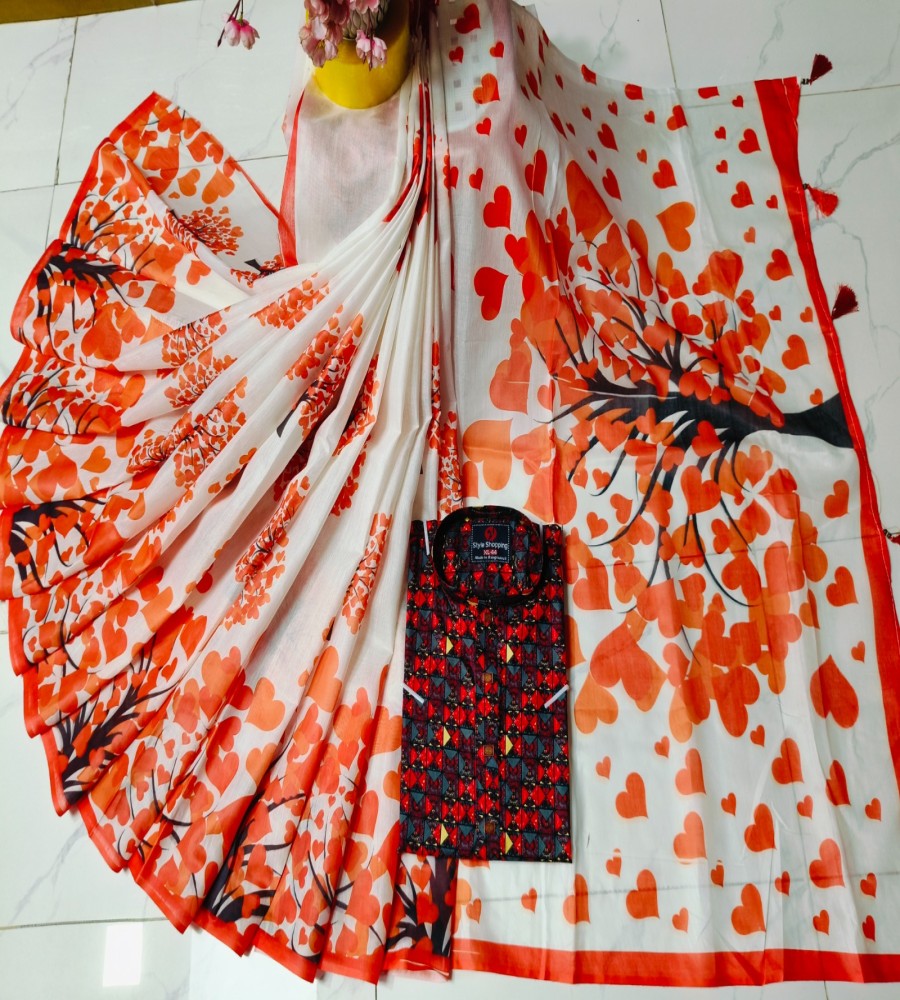 চান্দুরী ডিজিটাল প্রিন্টের শাড়ি এবং পাঞ্জাবি কাপল ড্রেস