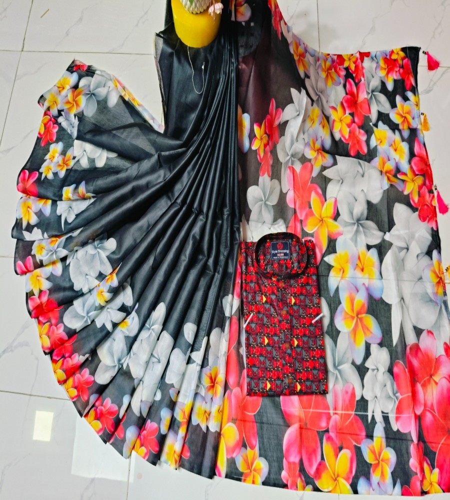 চান্দুরী ডিজিটাল প্রিন্টের শাড়ি এবং পাঞ্জাবি কাপল ড্রেস