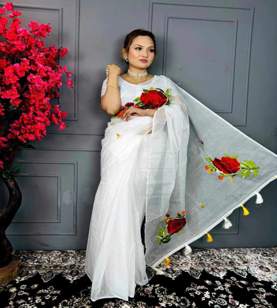 হাফসিল্ক শাড়ীতে এমব্রডারী কাজ করা