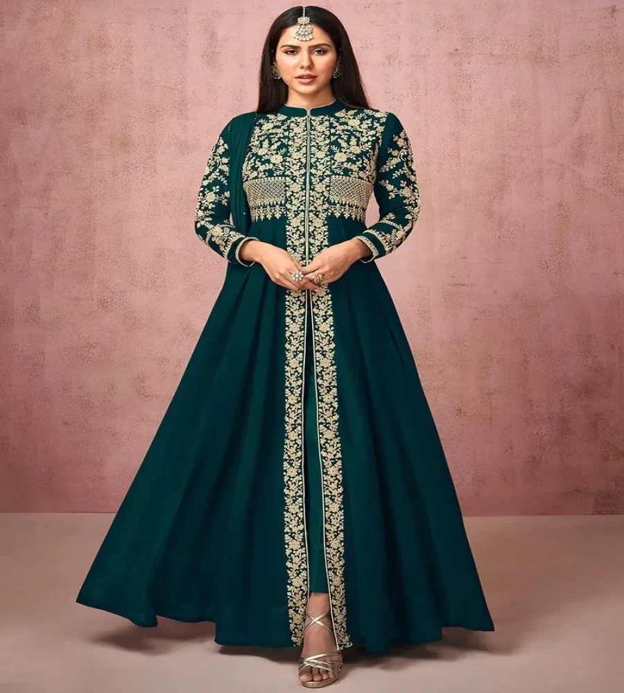 রেডিমেড জর্জেট এমব্রয়ডারি পার্টি ড্রেস