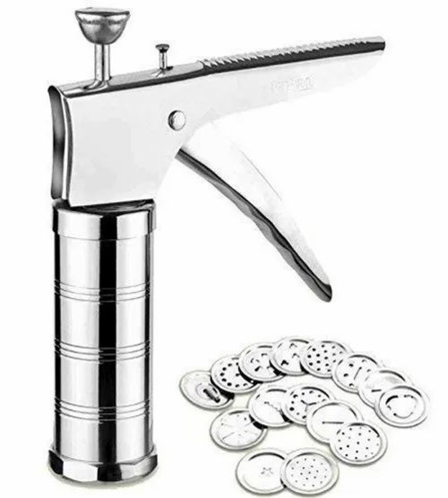 - Stainless Steel Kitchen Press Grater Cookies / Indian Snakes / Murukku Maker / Farsan Sev Maker with Stailess Steel Blades.