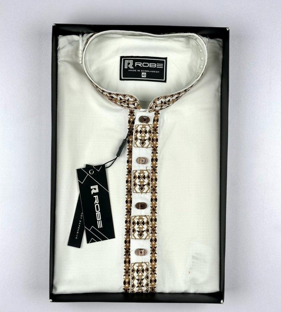 White Embroidered Viscose Panjabi