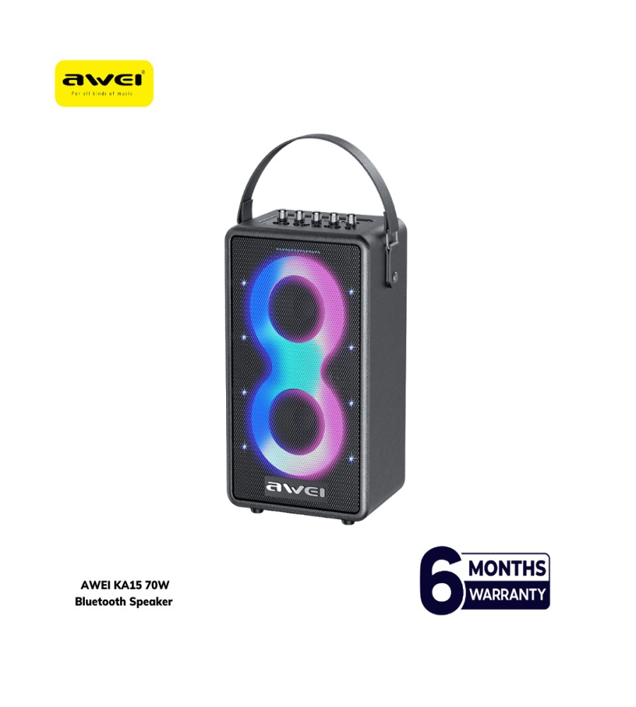 The Awei KA15 70W Outdoor Bluetooth Speaker is designed to deliver exceptional sound quality in any setting. With its powerful 70W output, this speaker produces immersive audio with deep bass and crystal-clear highs, perfect for parties, outdoor gatherings, or casual listening. Built for durability, the Awei KA15 is crafted with a rugged, waterproof design, making it ideal for outdoor adventures. Featuring advanced Bluetooth connectivity, it pairs effortlessly with your devices for a seamless listening experience. The long-lasting battery ensures hours of uninterrupted music, while its lightweight, portable design lets you take it anywhere. Elevate your outdoor audio experience with the Awei KA15 Bluetooth Speaker—the ultimate choice for power, durability, and performance.
