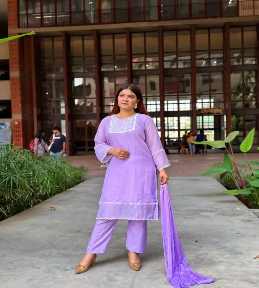 দক্ষ কারিগর দ্বারা সেলাই করা জর্জেট কারচুপি কাজ করা ফোর পিস কালেকশন।।