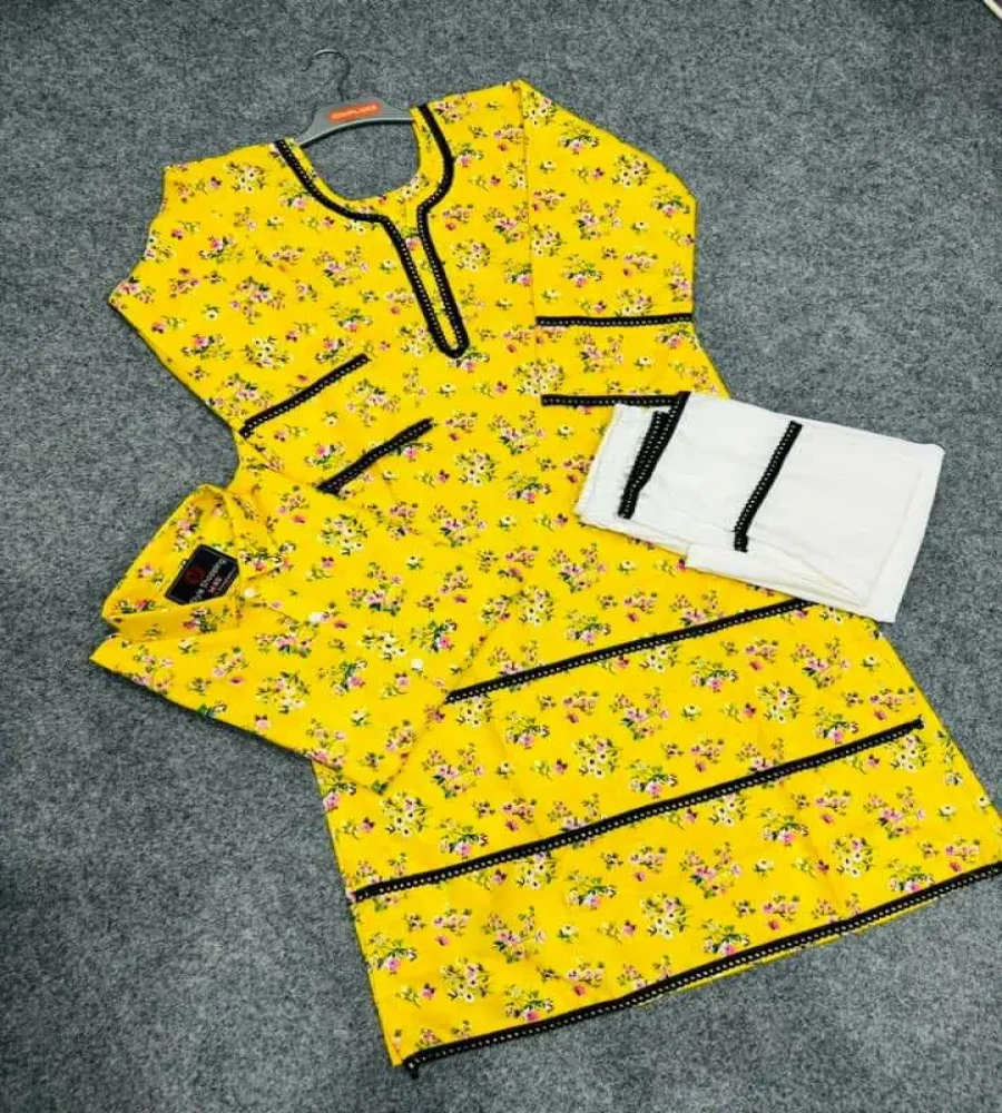 সেম টু সেম পাবেন , ডিজিটাল প্রিন্ট করা এবং লেসের কাজ করা থাকবে,,জামার লং ৪৫ ইঞ্চি,,, সেলোয়ার সাদা হবে এবং লেসের কাজ করা থাকবে।। ফ্রি সাইজ হবে সালোয়ার।।
