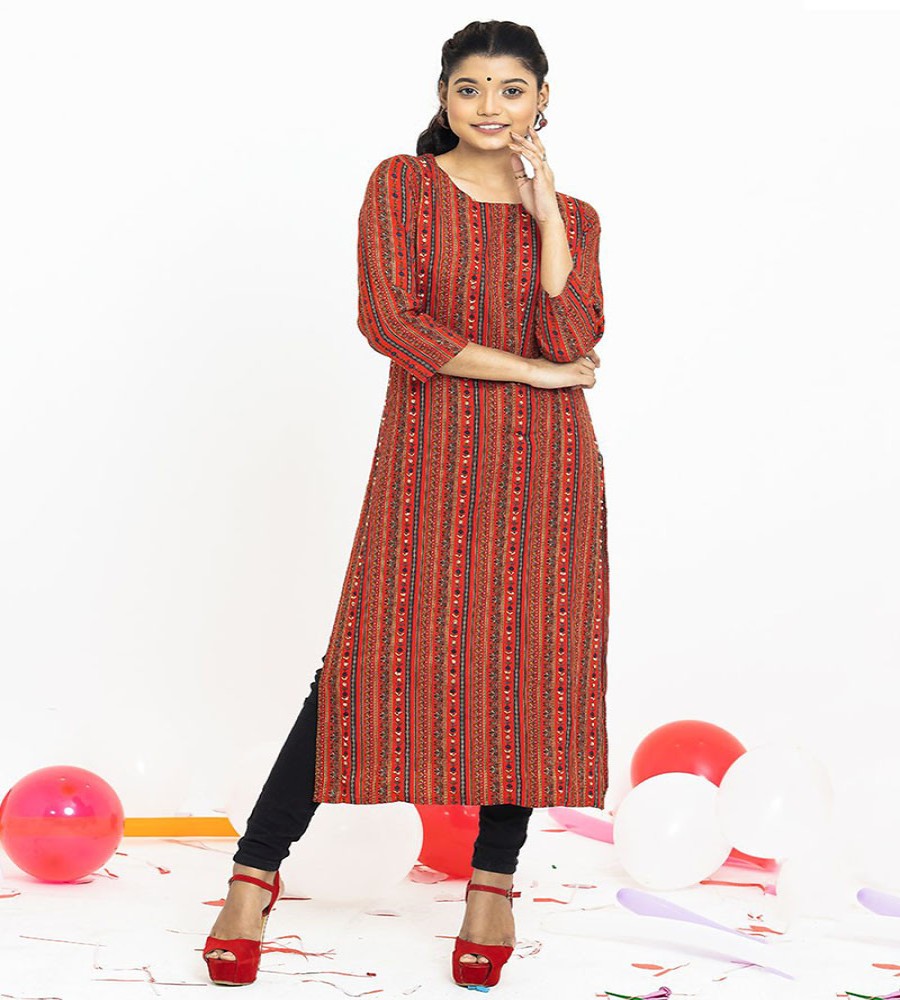 Product Type: Women Kurtis - Color: Red - Sleeve: 3/4 Sleeve - Best Production quality. Wash Instruction: - Machine wash cold. Gentle Cycle. Use only non-chlorine. Tumble dry low. Warm iron as needed. Made in Bangladesh Material & Care 100% Cotton/Print