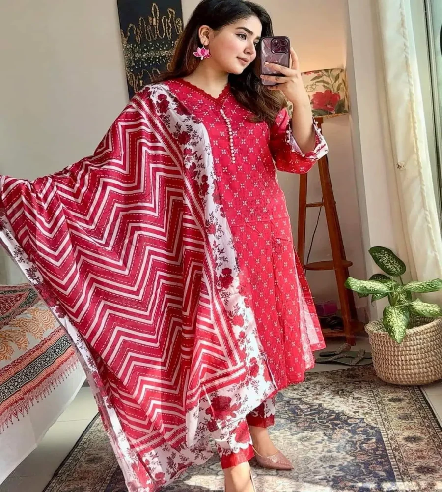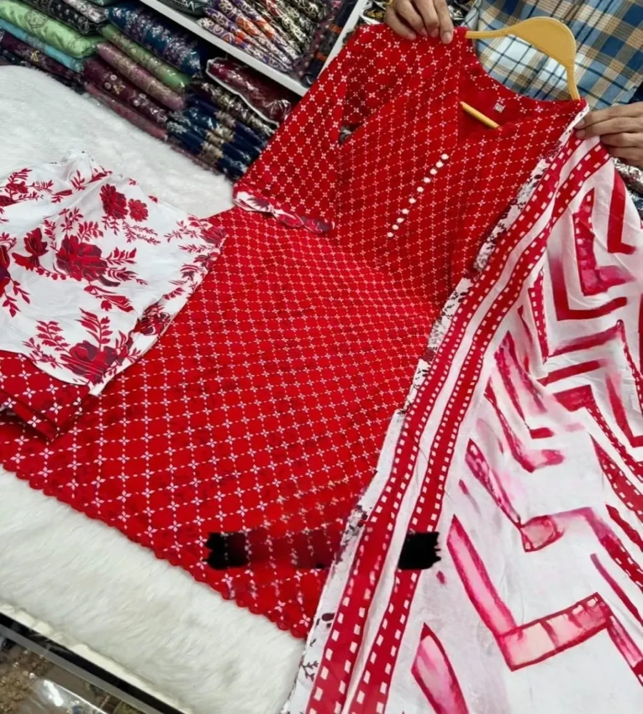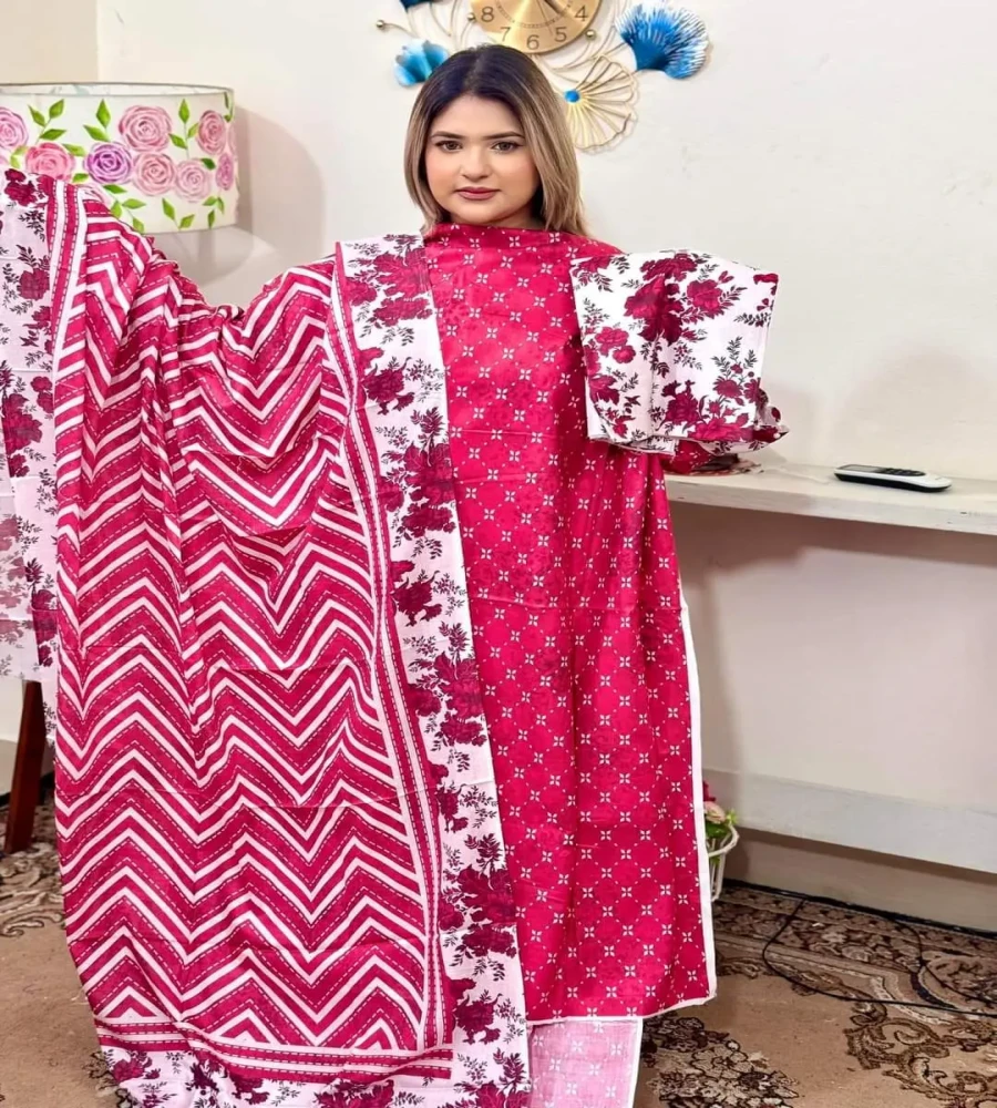 সম্পূর্ণ লেটেস্ট ডিজাইনের প্রিন্টের হাই কোয়ালিটি থ্রি পিস কালেকশন।